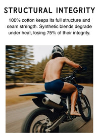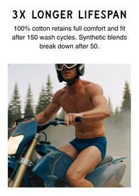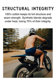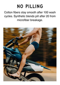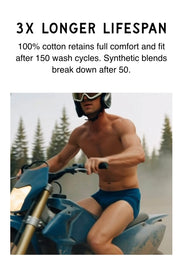 The hypoallergenic indigo dye and organic cotton reduces irritation and chemical exposure, while the natural latex waistband wicks moisture, promoting better circulation and skin health for active men.